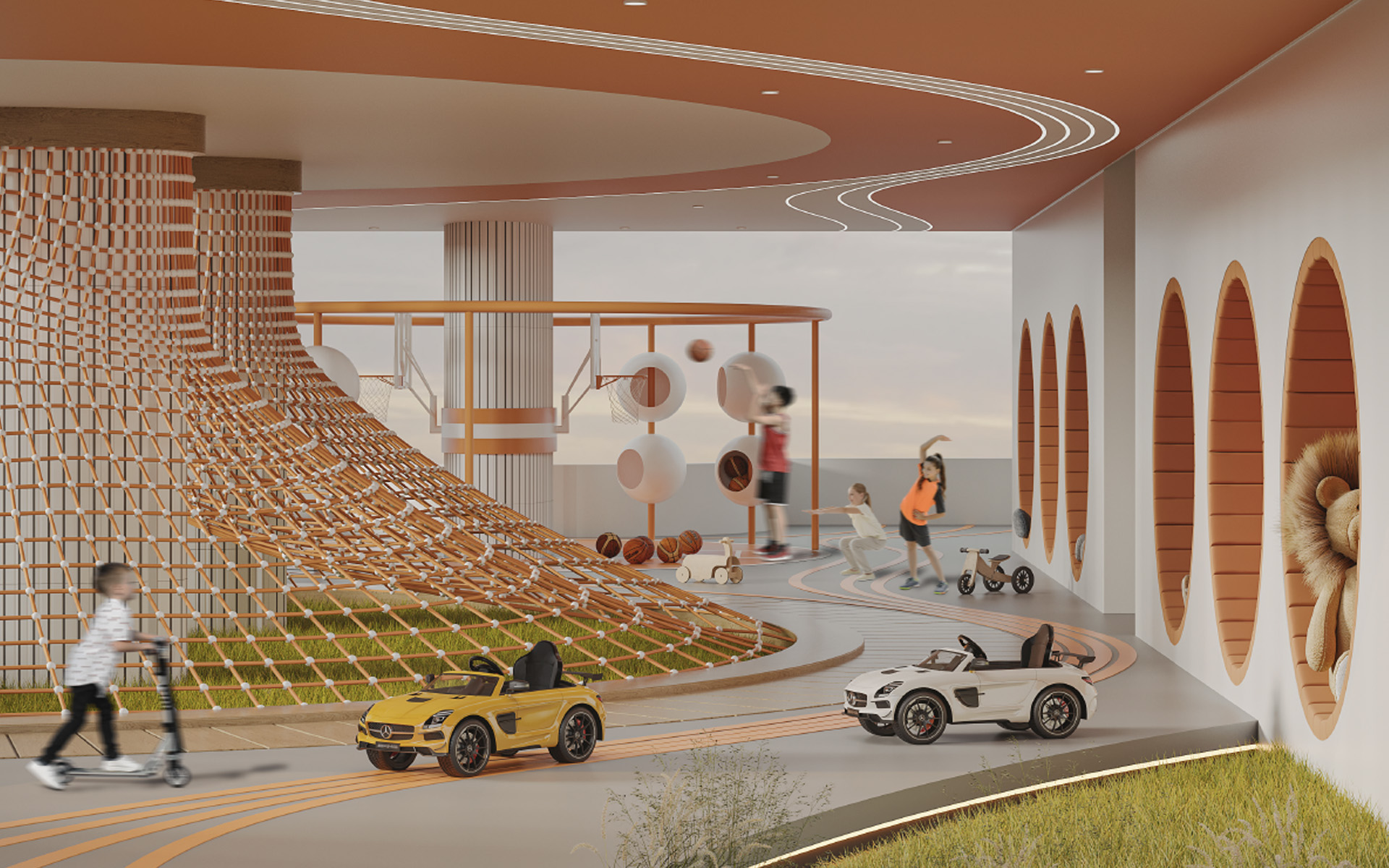 Bazen za djecu, zid za penjanje, košarkaški teren, dječji kutak, jogging staza, gaming room, coworking prostor, kino, bazen